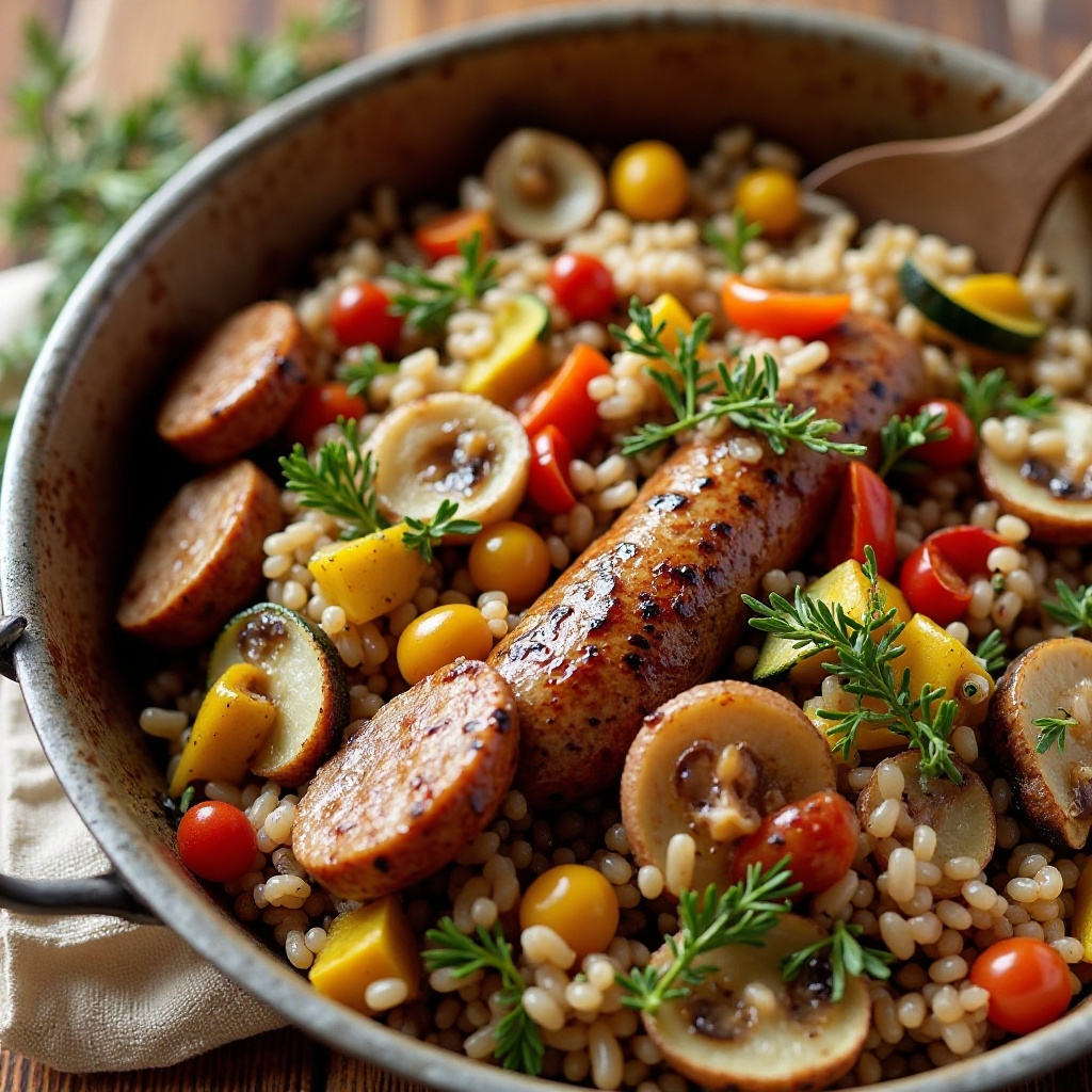 Elk Sausage es un tipo de embutido hecho con carne de alce, conocido por su sabor terroso y bajo contenido de grasa. Esta receta, inspirada en la cocina de Snowmass Village en Colorado, presenta Elk Sausage en un horno junto con champiñones y arroz integral, creando un plato sabroso y saludable.