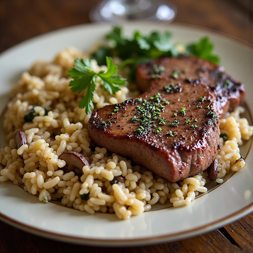 Receta de Elk Steak con Champiñones y Arroz Pilaf