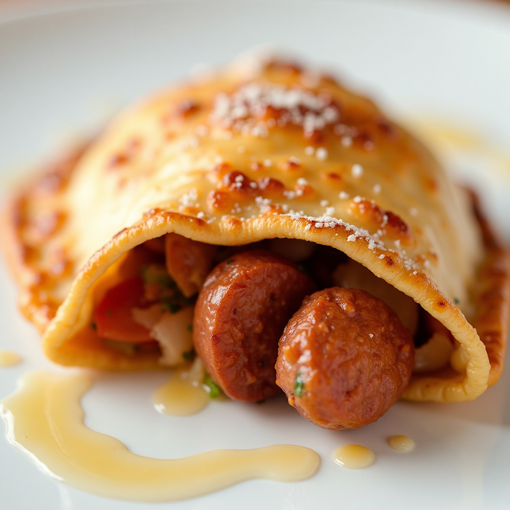 La empanada con embutidos artesanales es un plato sabroso pero debe ser disfrutado con moderación debido a su contenido de grasa y sal. La cebolla y los tomates aportan fibra y vitaminas esenciales, mientras que los embutidos proporcionan proteínas. Considera reducir la cantidad de aceite o optar por una versión asada para una alternativa más ligera.