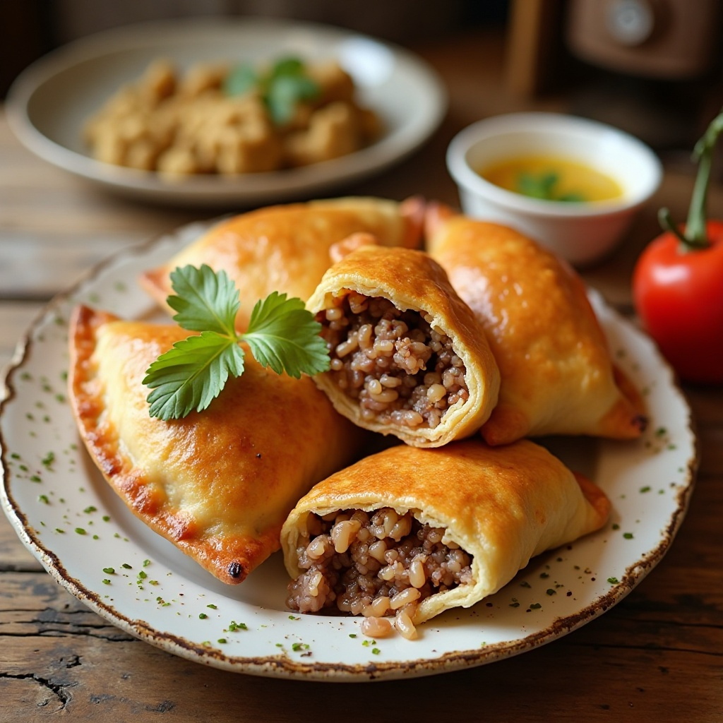- Asa las empanadas en una sartén caliente con un poco de aceite de oliva hasta que estén doradas y crujientes, aproximadamente 5-7 minutos por cada lado.