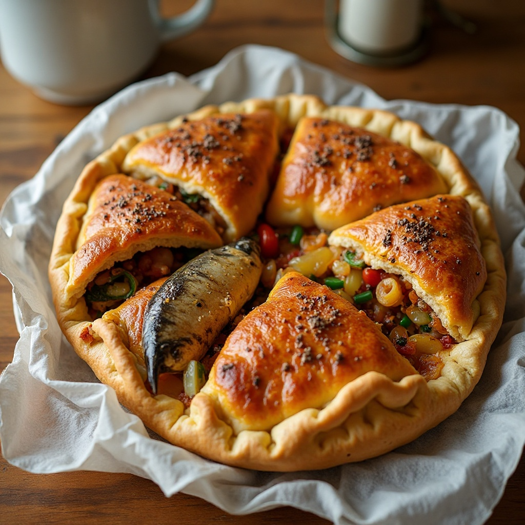 La empanada gallega es uno de los platos más emblemáticos de Galicia, y en Muxía, un pintoresco pueblo costero, se elabora con productos frescos del mar. Tradicionalmente, se hace con una masa de pan y se rellena con pescados como el bonito o la xouba (sardinilla), acompañados de un sofrito de cebolla, pimientos y tomate. Es una opción perfecta para compartir en reuniones o disfrutar como una comida completa.