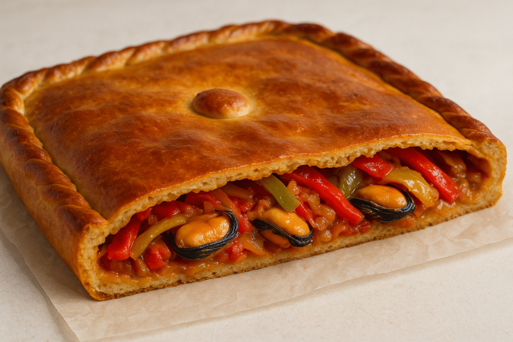 Los mejillones son una excelente fuente de proteínas y minerales como el hierro y el zinc. Además, los pimientos y tomates aportan vitamina C y antioxidantes. Para una opción más ligera, puedes utilizar una masa integral o reducir la cantidad de aceite en el relleno.