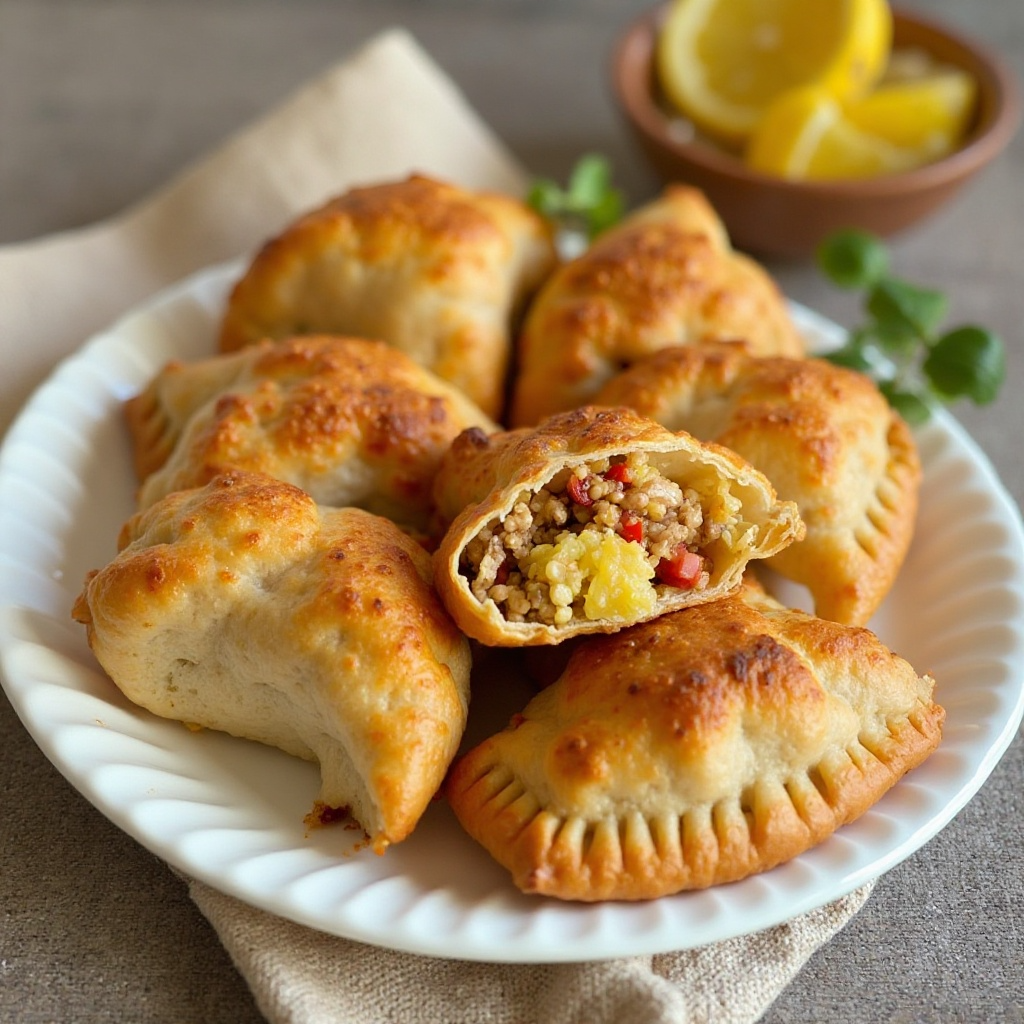 5. Coloca una cucharada generosa del relleno en el centro de cada empanada, doblándola sobre sí misma para formar un paquete cerrado. Asegúrate de que no haya burbujas de aire atrapadas para que se cocinen uniformemente.