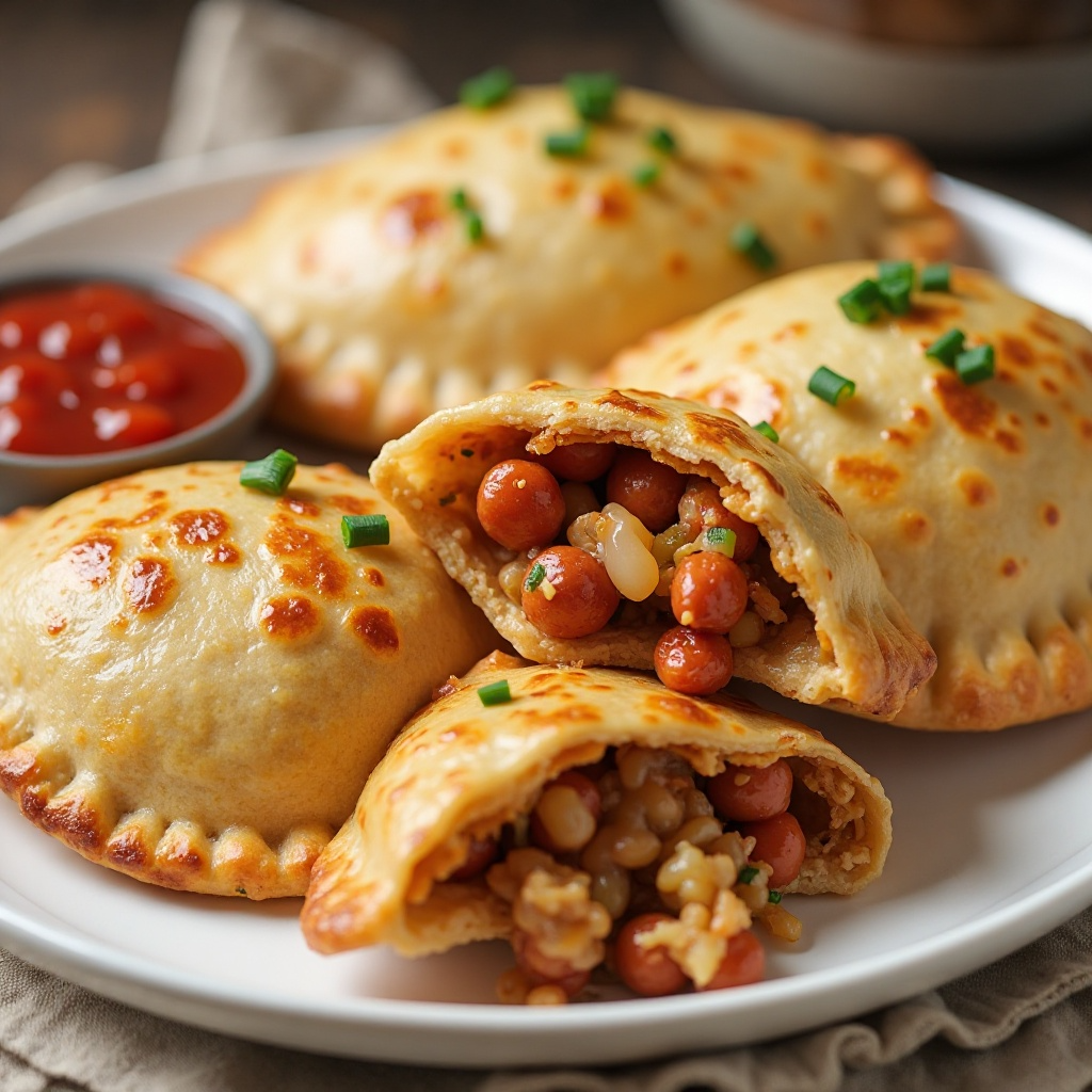 - Sirve las empanadas calientes, acompañadas de salsa de tomate casera si deseas, y decora con cebollín picado para añadir un toque fresco.
