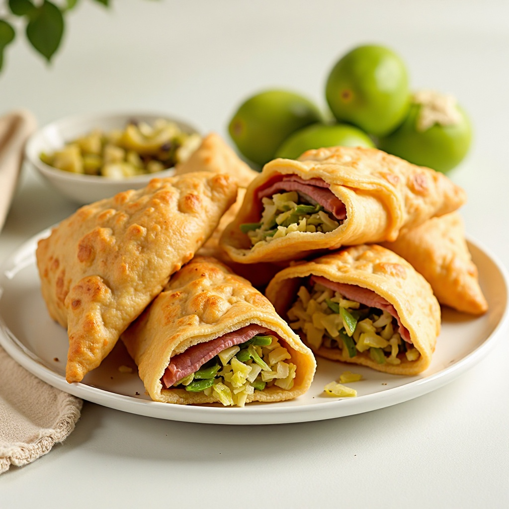 - Freír las empanadas en aceite caliente a fuego medio-alto hasta que estén doradas y crujientes, aproximadamente 5 minutos por lado. Asegúrate de que el jamón esté caliente pero no quemado.