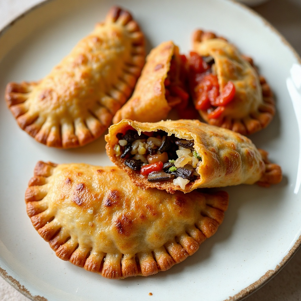 - Cierra las empanadas doblando los bordes y sella con huevo batido. Tostarlas en una sartén caliente hasta que estén doradas y crujientes.