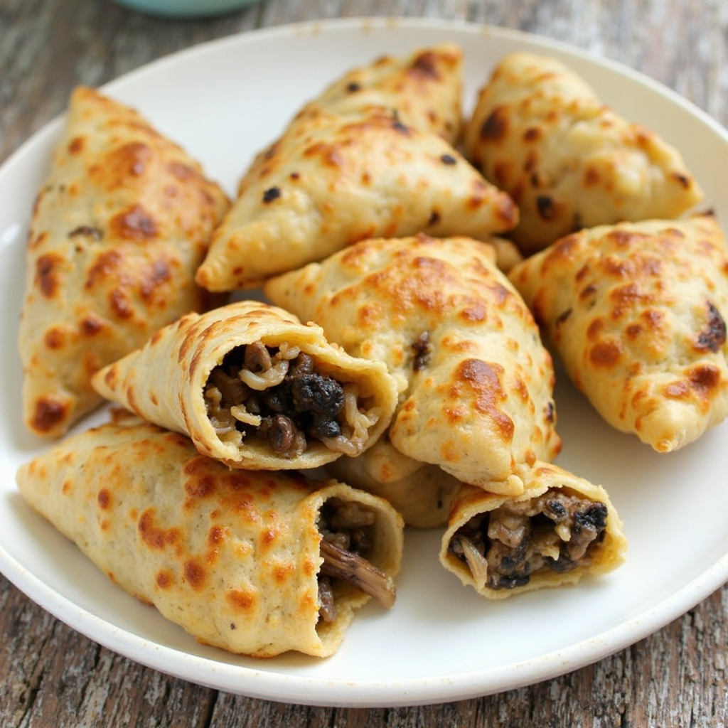 - Hornea las empanadas en una bandeja forrada con papel pergamino a 200°C (400°F) durante 20-25 minutos, o hasta que estén doradas y crujientes.