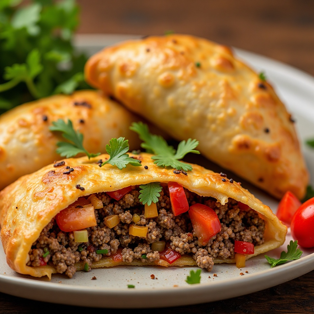 - Hornea las empanadas a 200°C (400°F) durante 20-25 minutos, o hasta que estén doradas y crujientes.