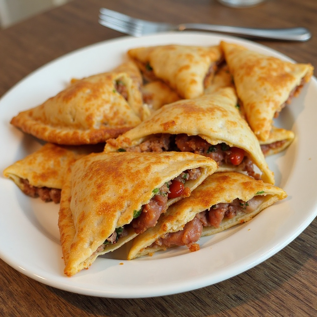 - Fríe las empanadas en aceite caliente hasta que estén doradas y crujientes, aproximadamente 5 minutos por lado. Retira con papel absorbente para eliminar el exceso de aceite.