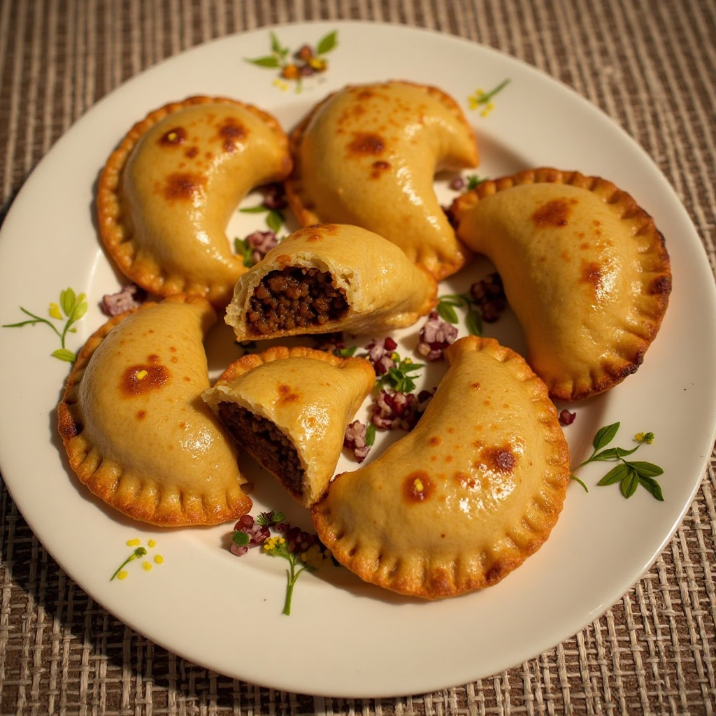 - Cierra la empanada doblando los bordes hacia el centro y sella con un poco de agua o huevo batido. Repite el proceso con todos los discos.