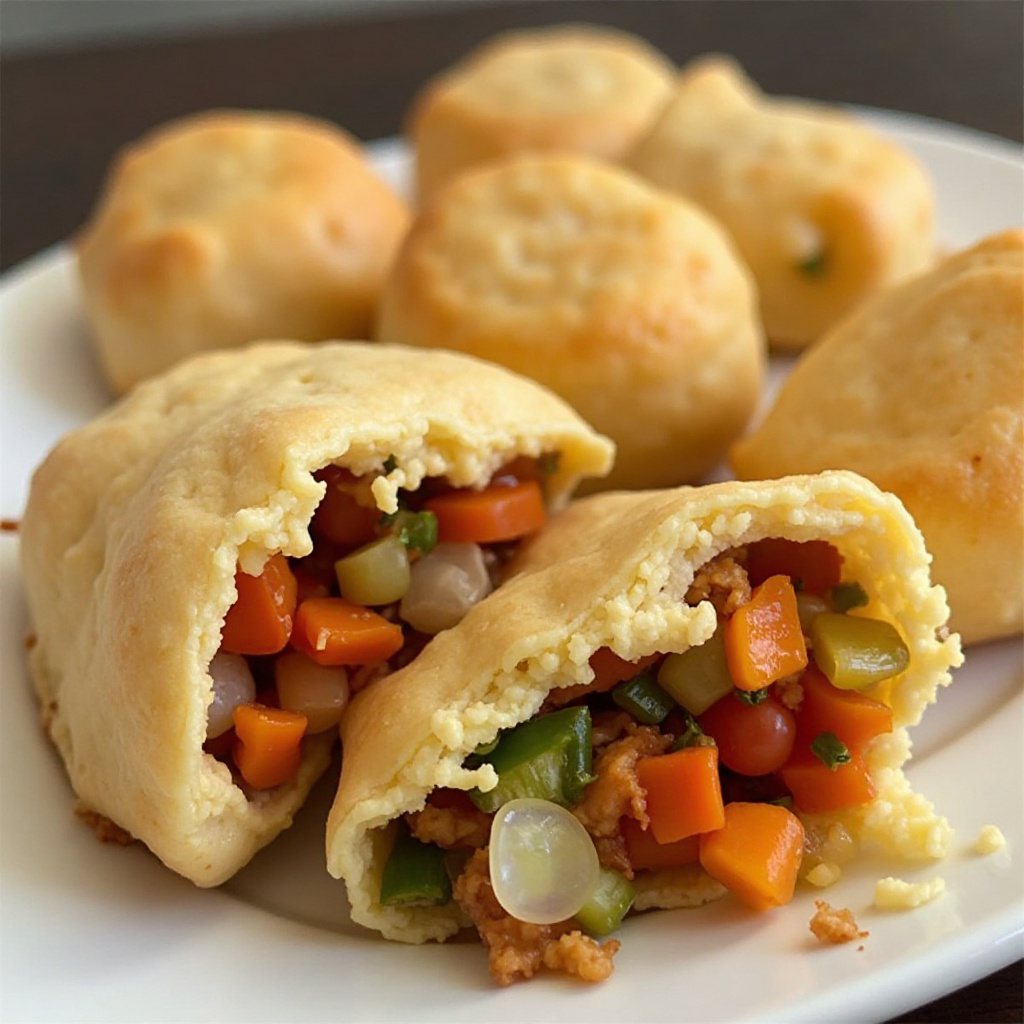 - Coloca un poco de la mezcla de verduras en el centro de cada empanada y cierra cuidadosamente, asegurando que no queden burbujas de aire dentro. Haz un pequeño agujero en la parte superior para dejar escapar el vapor durante la cocción.
