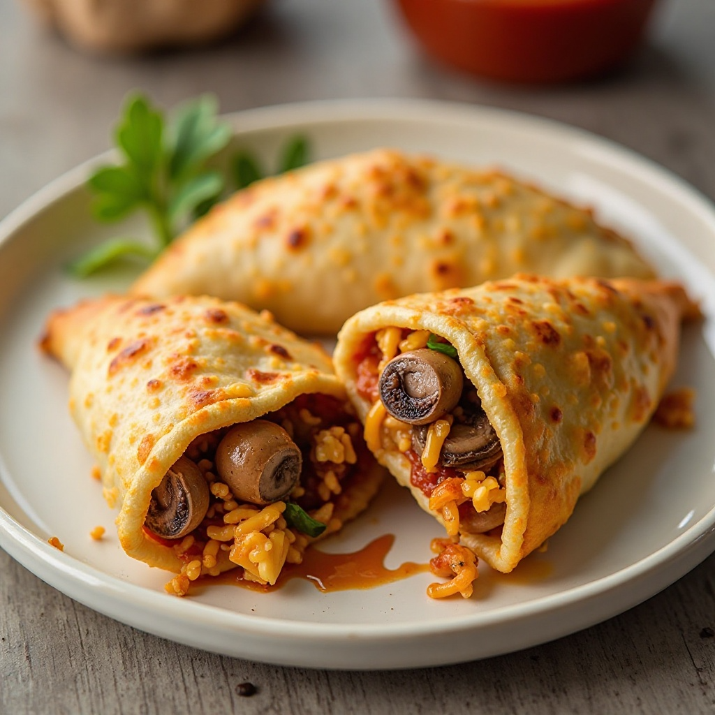 Esta receta balancea la rica textura crujiente de las empanadas con los beneficiosos antioxidantes de los champiñones. El queso cheddar añade un toque sabroso pero debe consumirse con moderación debido a su contenido calórico y grasa.