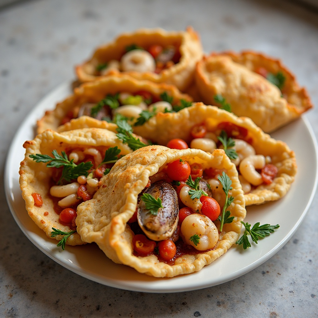 Las empanadas de mariscos son ricas en proteínas y ácidos grasos saludables. Los mariscos aportan omega-3, esenciales para la salud cardiovascular. Las verduras como la cebolla, pimientos y tomates introducen fibra y antioxidantes. Sin embargo, es importante considerar las alergias a los mariscos o el contenido de sal dependiendo de las restricciones dietéticas individuales.