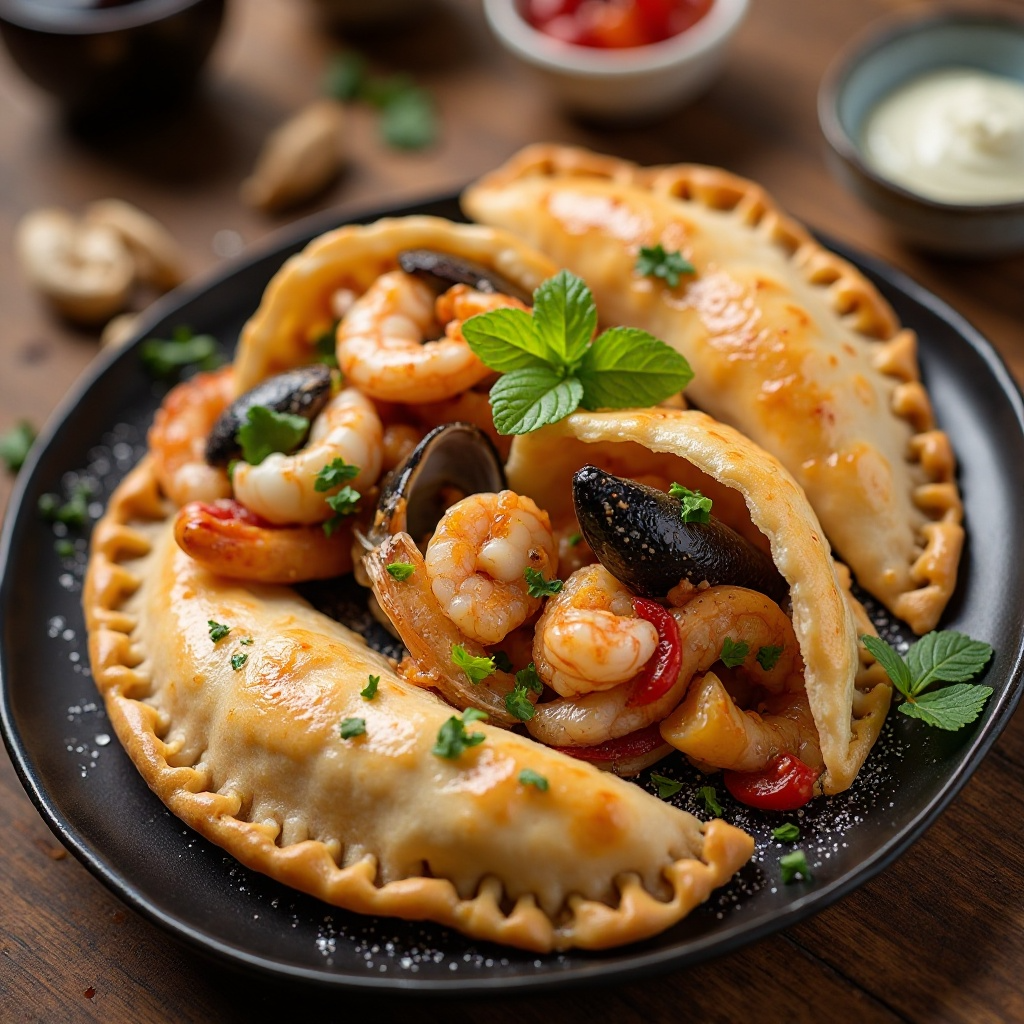 - Llena cada empanada con la mezcla de mariscos, asegurándote de dejar espacio para doblar los bordes correctamente.