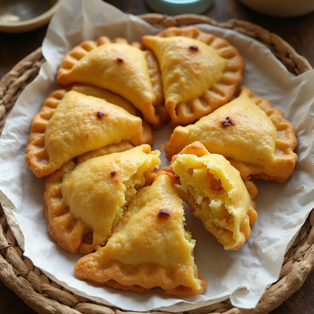 Las empanadas son un plato tradicional de Chile que varían significativamente de una región a otra. Aquí presentamos una versión de empanadas inspirada en Santiago, usando ingredientes locales como el mote (maíz tostado y pelado) y huesillo (una fruta típica de la zona), creando una delicia salada y dulce al mismo tiempo. Ideales para compartir en cualquier ocasión, estas empanadas son perfectas para un almuerzo informal o una merienda.