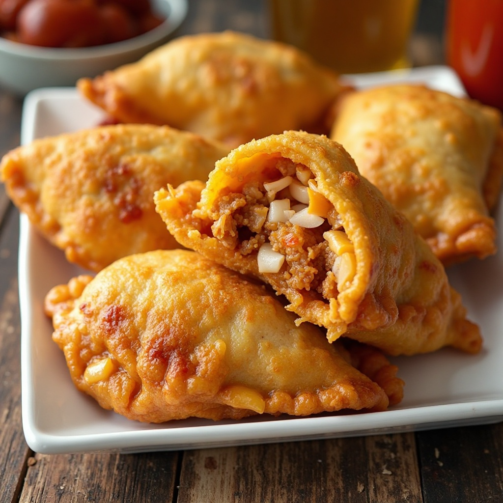 - Fríe las empanadas en aceite caliente hasta que estén doradas y crujientes, aproximadamente 3 minutos por lado.