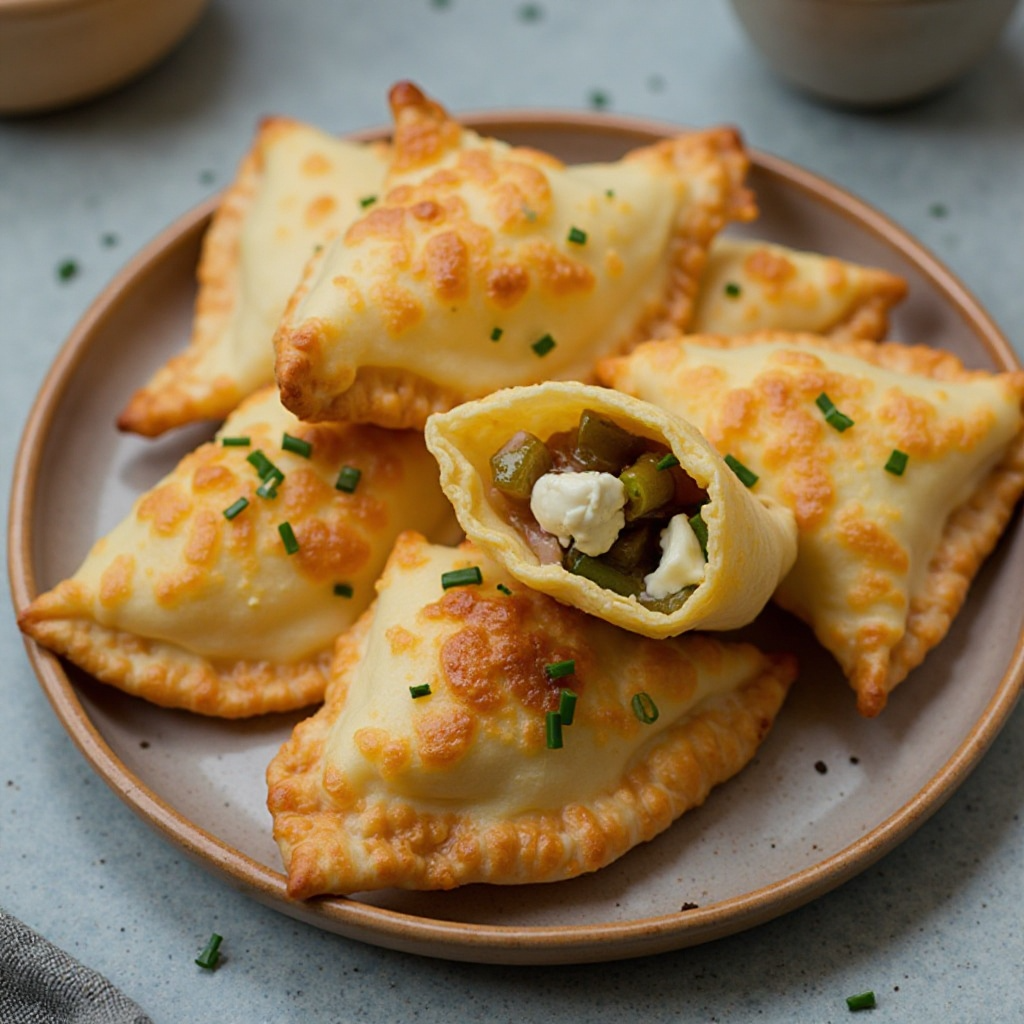 Estas empanadas son un clásico de la cocina vasca y una forma deliciosa de disfrutar del queso Idiazabal, conocido por su sabor ahumado y picante. La piperrada, hecha con pimientos y cebolla, añade un toque crujiente y agridulce a la masa cremosa y al queso.