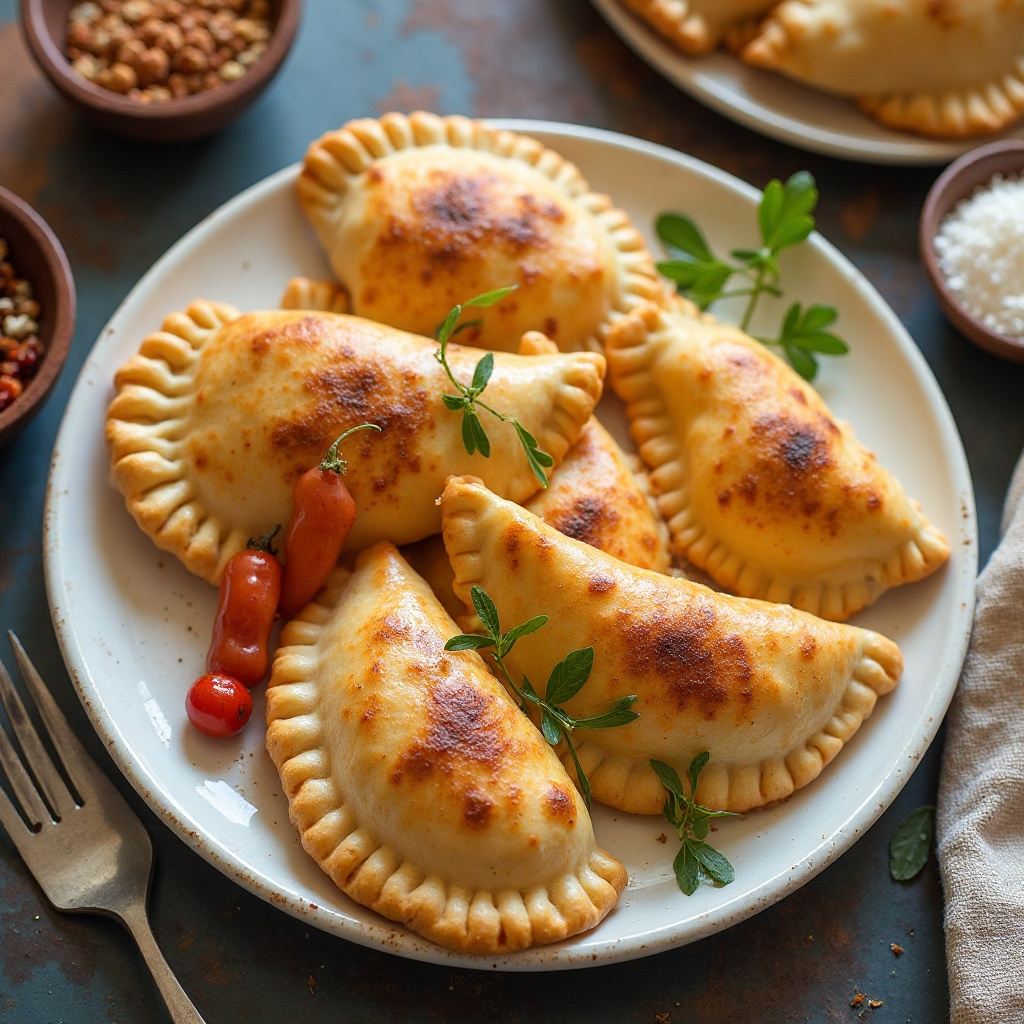 6. Coloca las empanadas en una bandeja para horno y hornea durante 15-20 minutos, o hasta que estén doradas y crujientes.