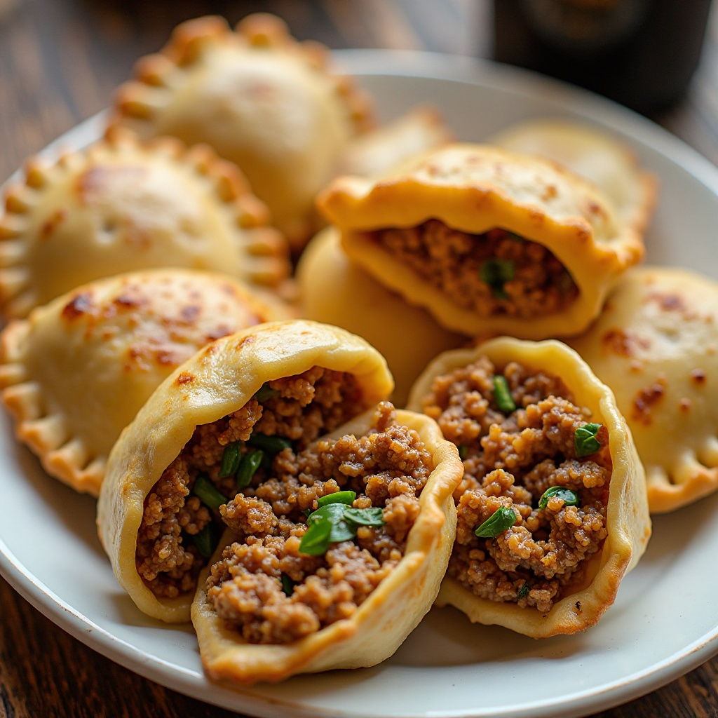 - Hornea las empanadas a 180°C durante 25-30 minutos, o hasta que estén doradas y crujientes.