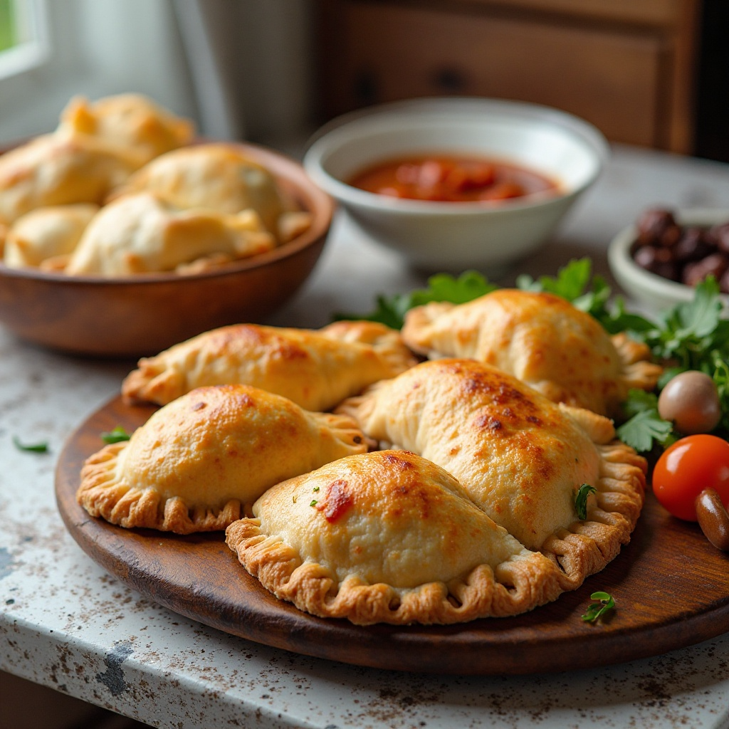 6. Coloca las empanadas en una bandeja de horno forrada con papel sulfurizado y hornea a 180°C durante aproximadamente 20-25 minutos, o hasta que estén doradas.