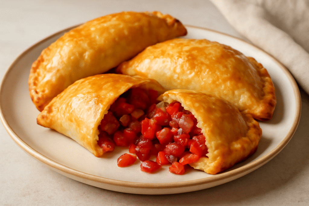 5. Cierra las empanadas siguiendo tu técnica preferida y hornéalas a 180°C (350°F) durante aproximadamente 25-30 minutos, o hasta que estén doraditas y crujientes.