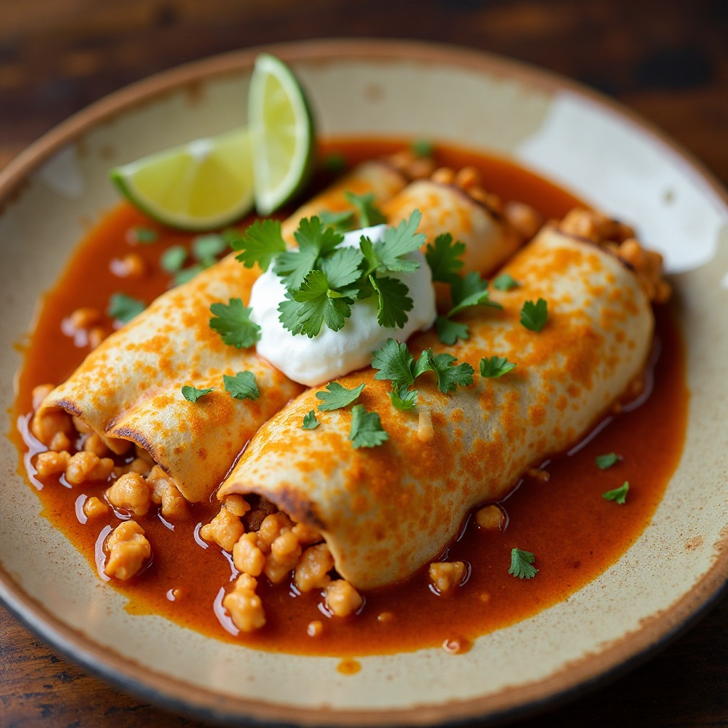 6. Coloca las enchiladas en un plato hondo y espolvorea con cilantro fresco y jugo de lima justo antes de servir.
