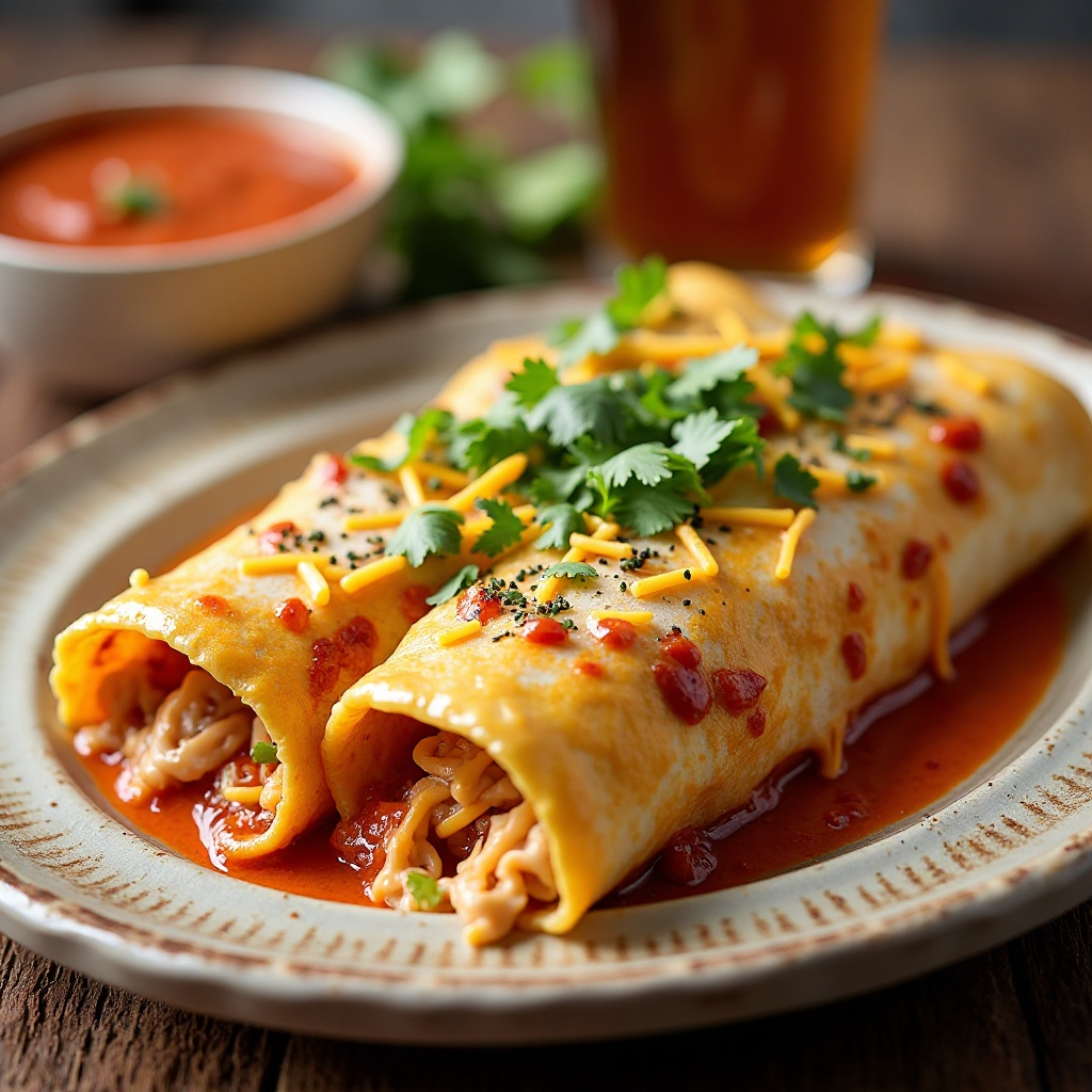 Las enchiladas tejanas son una variante popular de México en el sur de Texas, y son especialmente apreciadas en Brownsville. Este plato combina una base de tortillas de maíz con una salsa picante de chile rojo y un relleno a menudo de carne de pollo. La receta aquí incluye un toque cremoso con queso crema, perfecto para una comida abundante y deliciosa.