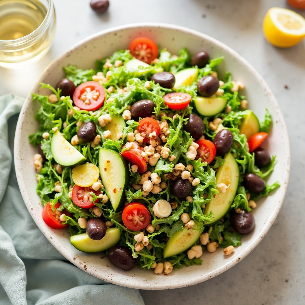 Esta ensalada es baja en calorías y rica en antioxidantes gracias a las verduras y el aceite de oliva, que promueven una dieta equilibrada. El uso de aceite de oliva de la Terra Alta puede aportar beneficios cardiovasculares. Si se prefiere una opción sin gluten, asegúrate de que el aceite usado sea apto para esta restricción.
