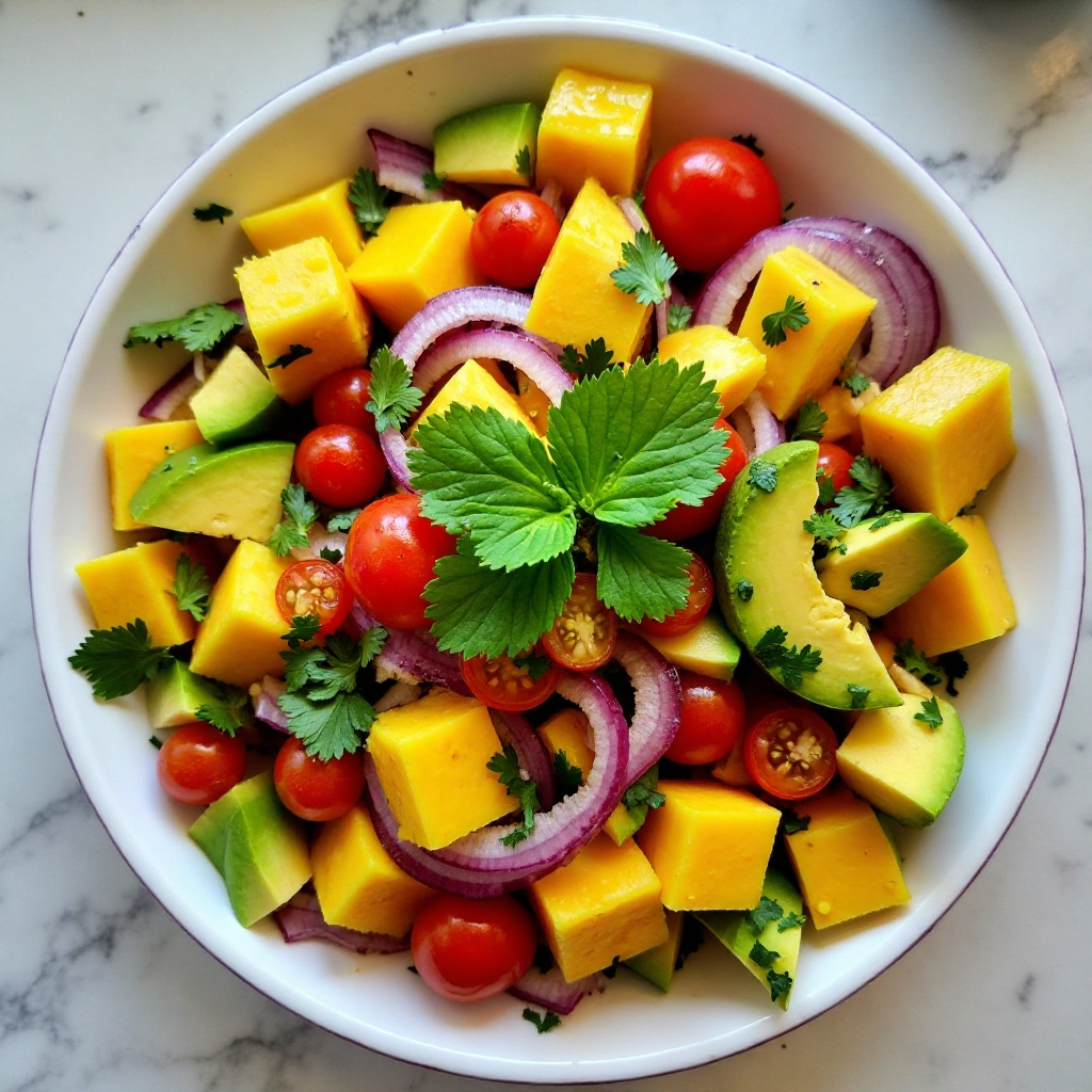 El Bienmesabe chiricano es una variedad de fruta endémica de Chiriquí, Panamá, con un sabor afrutado y una textura crujiente. Esta receta presenta una ensalada vibrante que utiliza Bienmesabe en su punto óptimo de madurez, combinada con otros ingredientes tropicales frescos típicos de la región.