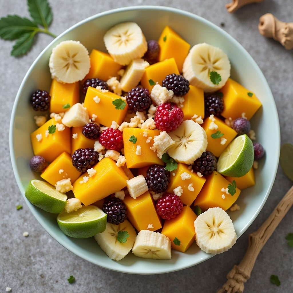 3. Ralla el jengibre fresco y mezcla delicadamente con la ensalada para resaltar el sabor tropical sin abrumar los otros ingredientes.