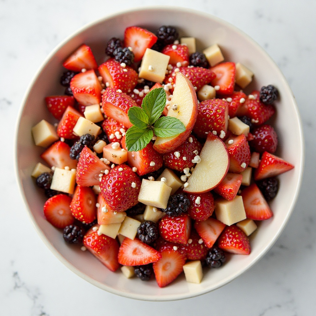 Esta ensalada es baja en calorías y rica en antioxidantes, gracias a las frutas frescas. El uso de un vino tinto puede aportar beneficios para la salud, como el resveratrol, conocido por sus propiedades antioxidantes. Sin embargo, se recomienda moderar el consumo de vino, incluso cuando se utiliza como parte de una receta.