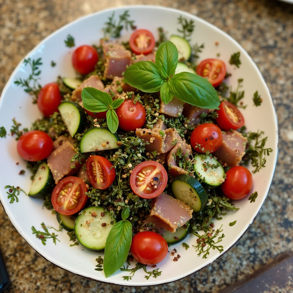 Esta ensalada es baja en calorías pero rica en antioxidantes y vitaminas gracias a los tomates cherry y las hierbas ibicencas. El jamón de bellota aporta grasas saludables, mientras que el vinagre balsámico contribuye a mejorar la digestión. Para aquellos con restricciones alimenticias, la ensalada es naturalmente libre de gluten y puede ser disfrutada sin preocupaciones sobre alergias comunes.