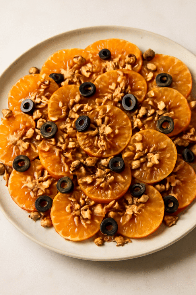 3. Agrega las rodajas de mandarina y las aceitunas negras a la mezcla de frutos secos.