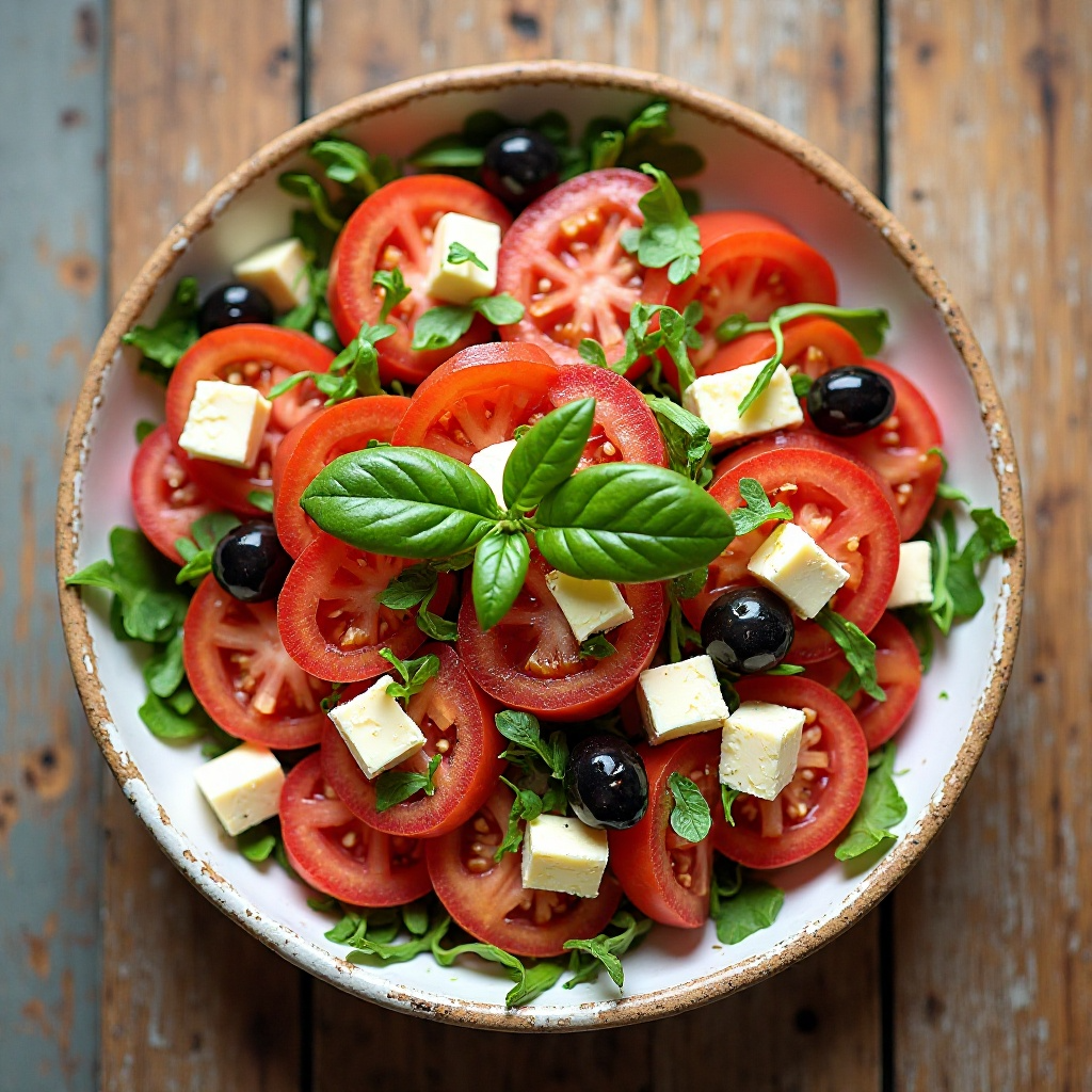 La ensalada de tomate y queso de Mahón es un clásico de la cocina española, especialmente popular en las Islas Baleares. Este plato es fresco, ligero y delicioso, perfecto para cualquier comida o cena. La clave está en los tomates maduros y el queso Mahón, que le confieren un sabor distintivo y auténtico a la ensalada.