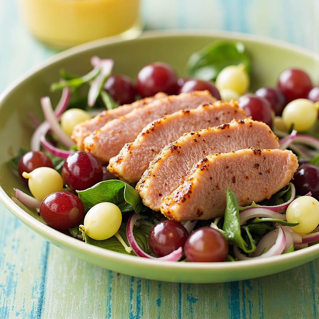 Esta ensalada es perfecta para quienes disfrutan de la frescura de las frutas del verano y la textura jugosa del atún. Utiliza uvas de la región de Arkansas River Valley, famosas por su dulzura y calidad, que aportan un toque único a este plato. Ideal para una cena ligera o un almuerzo veraniego.
