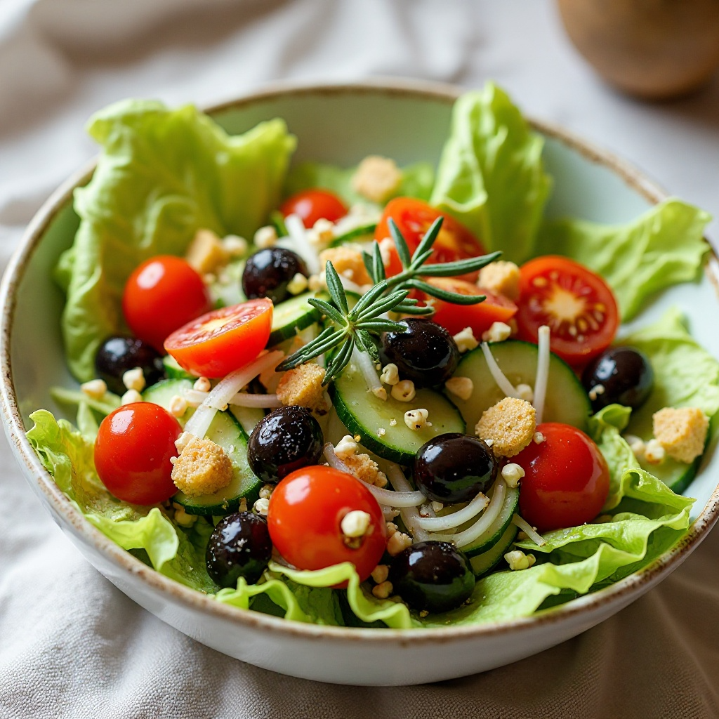 Esta ensalada es baja en calorías y rica en vitaminas y antioxidantes. La miel de romero no solo le da un toque único, sino que también aporta propiedades antibacterianas y antiinflamatorias. El aceite de oliva y los tomates son fuentes de grasas saludables, mientras que el pepino proporciona hidratación. Si tienes sensibilidad a los alérgenos, presta atención a las fuentes de miel y aceitunas utilizadas.