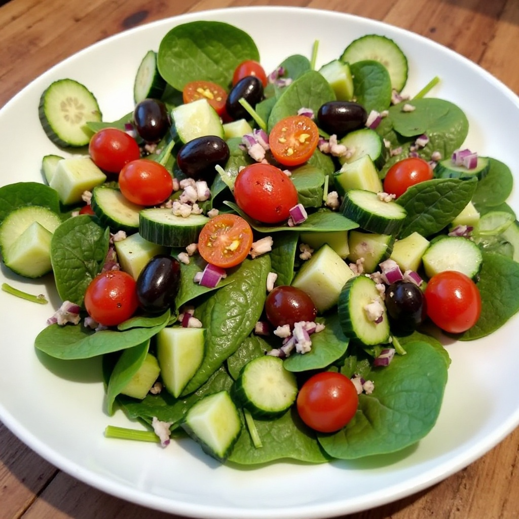 Esta ensalada es baja en calorías y rica en nutrientes, gracias a los vegetales verdes como las espinacas y los tomates. El vinagre balsámico añade un toque ácido que puede ayudar a mejorar la digestión. Es una opción saludable para quienes buscan mantener una dieta equilibrada y ligera.