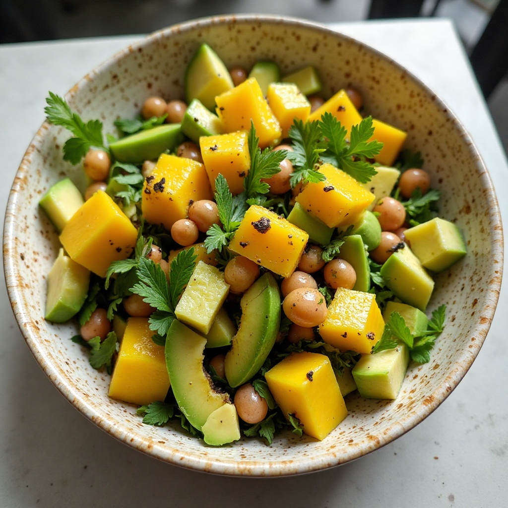 Esta ensalada es rica en vitaminas C y E, gracias a las frutas tropicales y las hierbas utilizadas. El aguacate aporta grasas saludables esenciales, mientras que el cilantro ofrece propiedades antioxidantes. Recuerda que el maracuyá es rico en ácido málico, lo que puede ayudar a la digestión al aliviar ligeramente el estómago.