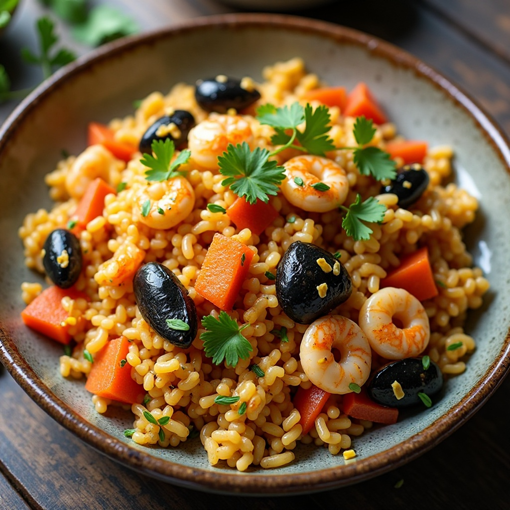 Este plato es una opción nutritiva gracias a los mariscos y verduras, que proporcionan proteínas, vitaminas y minerales esenciales. La elección de una salsa de soja baja en sal ayuda a controlar la ingesta de sodio. Recuerda mantener el equilibrio al incluir grasas saludables como el aceite de oliva y el sésamo.