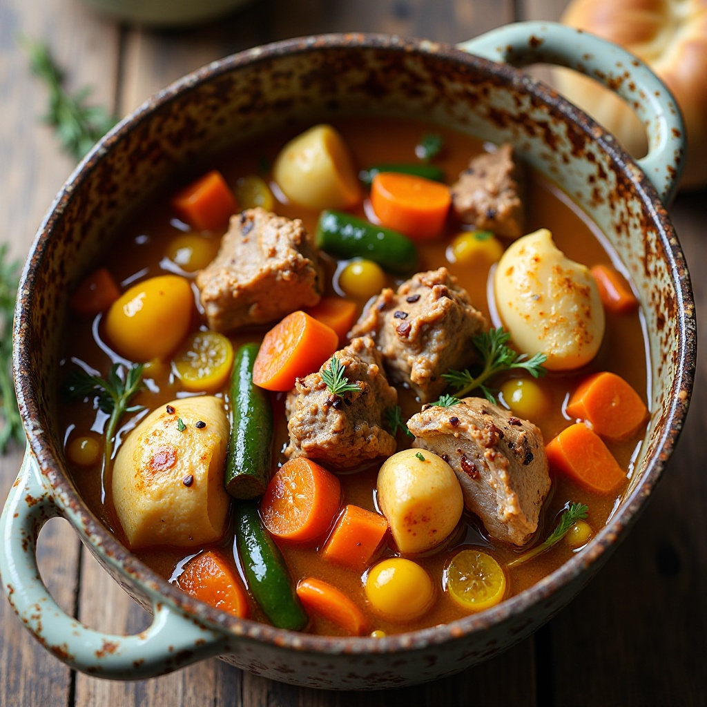 4. Lleva a ebullición, reduce el fuego a medio-bajo y cocina a fuego lento durante 1 hora para que los sabores se mezclen y se ablanden las verduras.