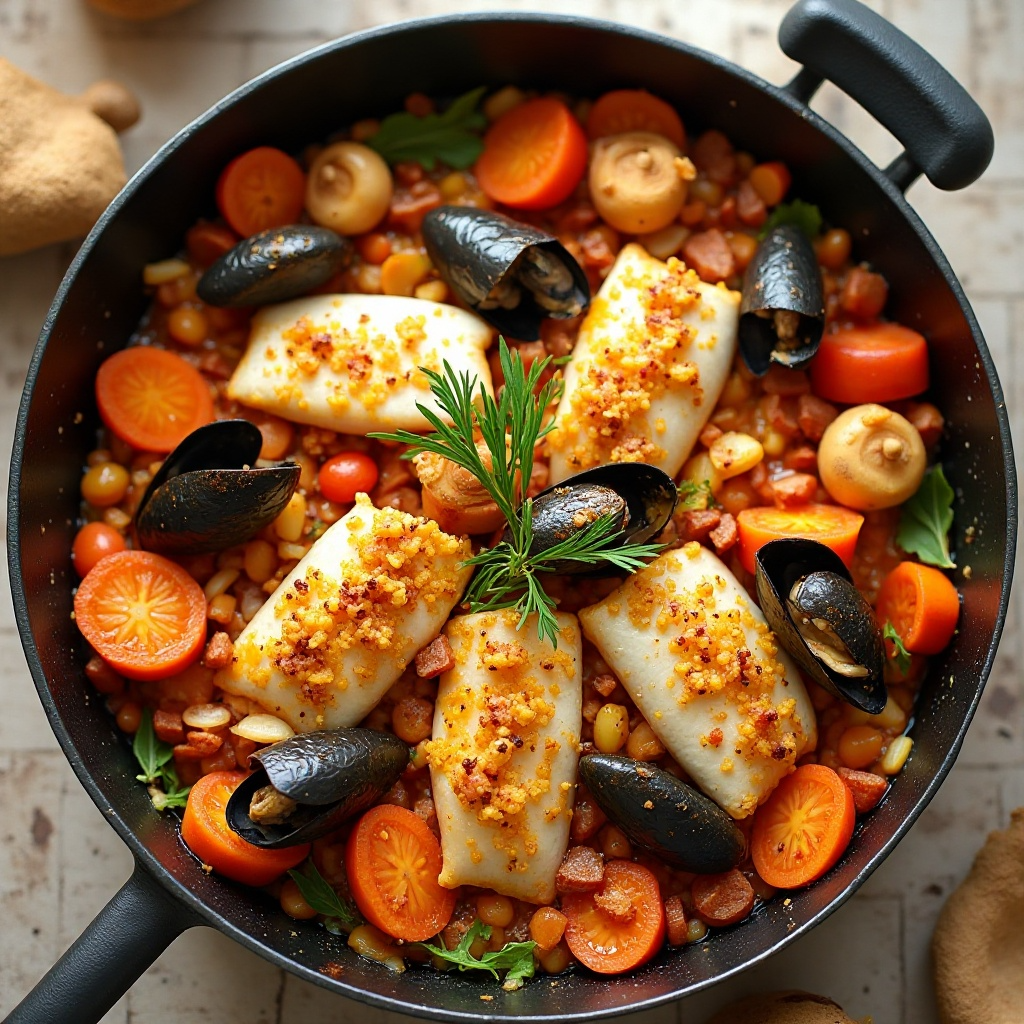 El estany de peix es un plato tradicional valenciano, también conocido como paella de marisco. Este plato es perfecto para quienes disfrutan de un sabor mediterráneo y fresco. El estany se caracteriza por su presentación en un recipiente refractario, similar a una paella, pero con una salsa ligera y aromática. Esta receta es ideal para compartir en una reunión familiar o para disfrutar en una comida casual.