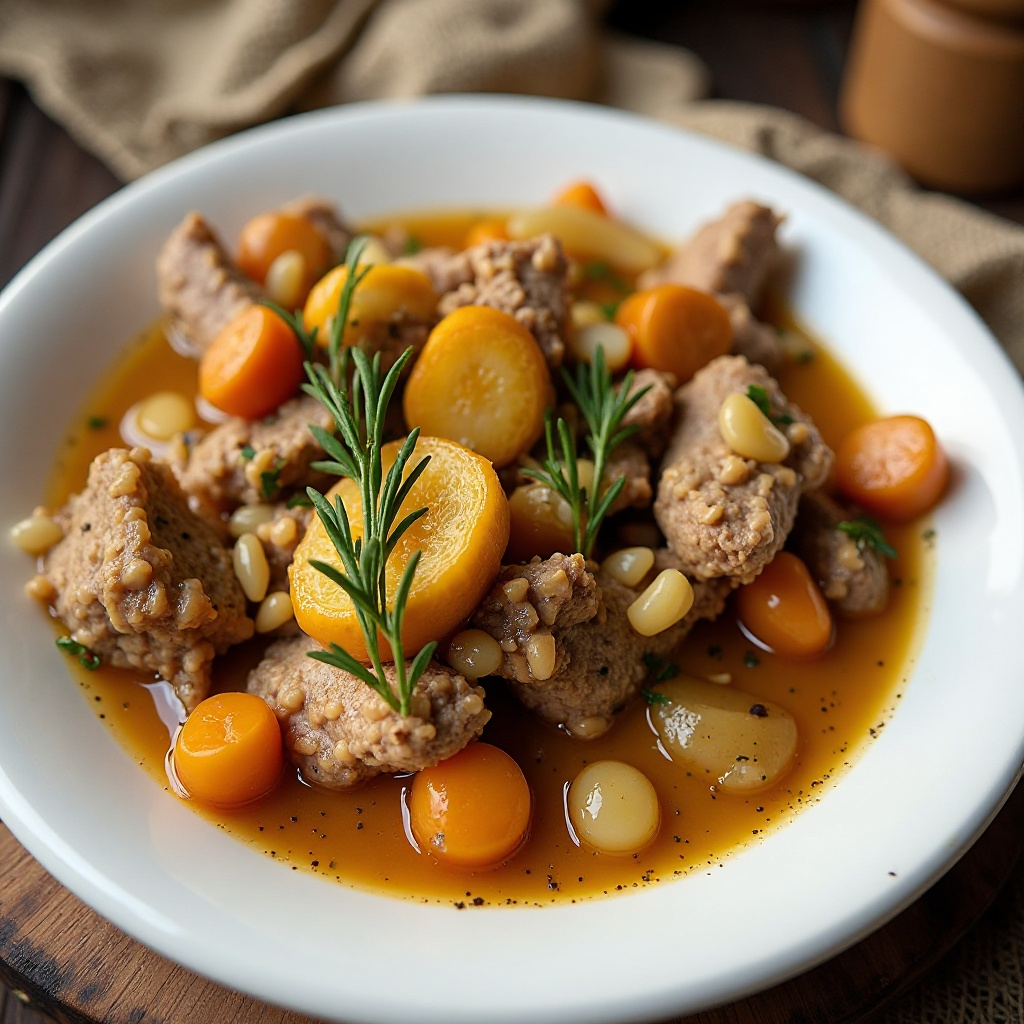 Andorra es conocida por su gastronomía rica y variada, que a menudo incluye ingredientes locales. La carne de caza, como el conejo o la liebre, es un elemento común en la cocina andorrana. Este estofado fusiona la tradición con un toque moderno, utilizando patatas andorranas para añadir textura y sabor.