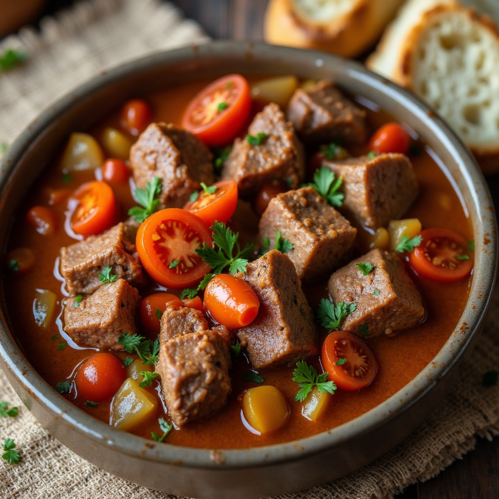 Este estofado de cordero es rico en proteínas y nutrientes esenciales. La carne de cordero es una fuente natural de hierro, vitaminas B6 y B12. Sin embargo, es importante controlar las porciones debido al contenido calórico y de grasa de la carne. Añadir verduras como zanahoria y pimiento aumenta su valor nutricional.