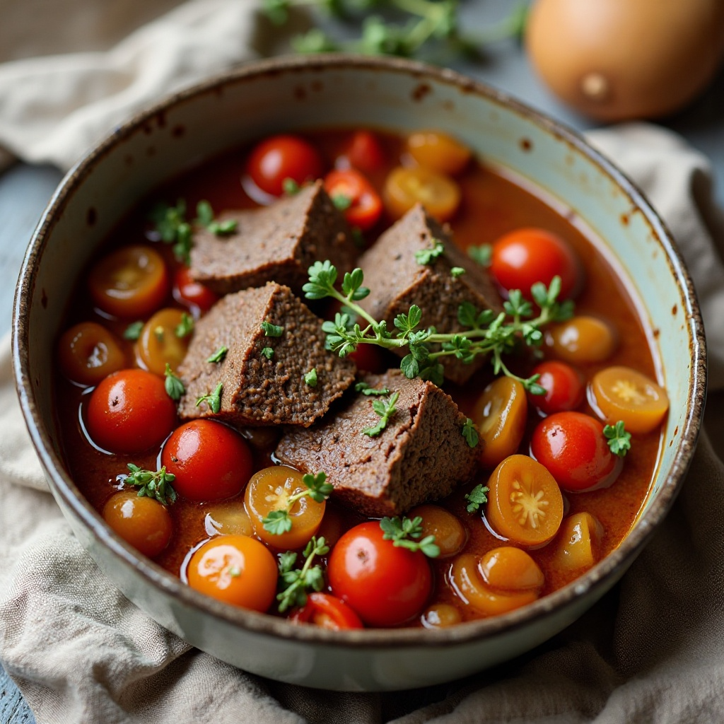 - Vuelve a añadir la carne a la olla y vierte el caldo de ternera. Añade sal y pimienta al gusto. Cocina a fuego bajo durante aproximadamente 2 horas, hasta que la carne esté tierna y los sabores se hayan fusionado.