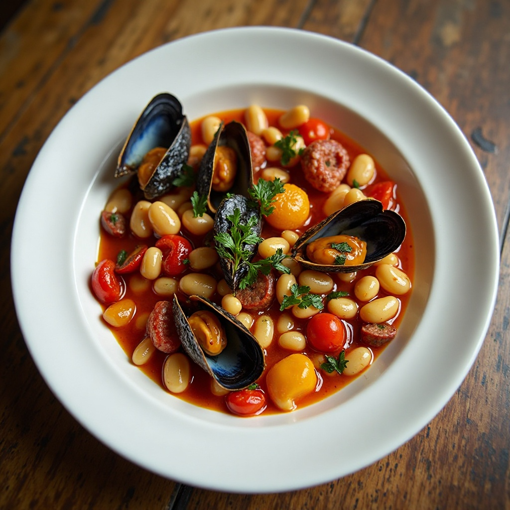 Luarca es conocida por su proximidad al Cantábrico, lo que le otorga una riqueza marina excepcional. Esta región ofrece mariscos frescos y de calidad, como los mejillones utilizados en esta receta. La fabada adaptada para Luarca muestra cómo la cocina local se integra con influencias regionales, respetando los sabores tradicionales de Asturias mientras celebra los productos locales.