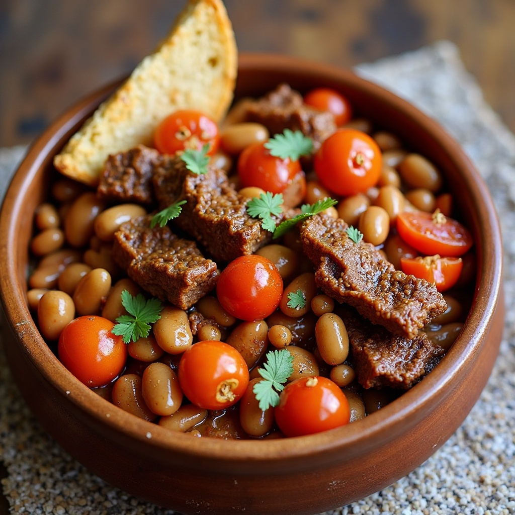 - Agrega los feijões cocidos y el pimiento rojo. Cocina a fuego lento durante 1-2 horas, hasta que los sabores se mezclen y la carne esté tierna.