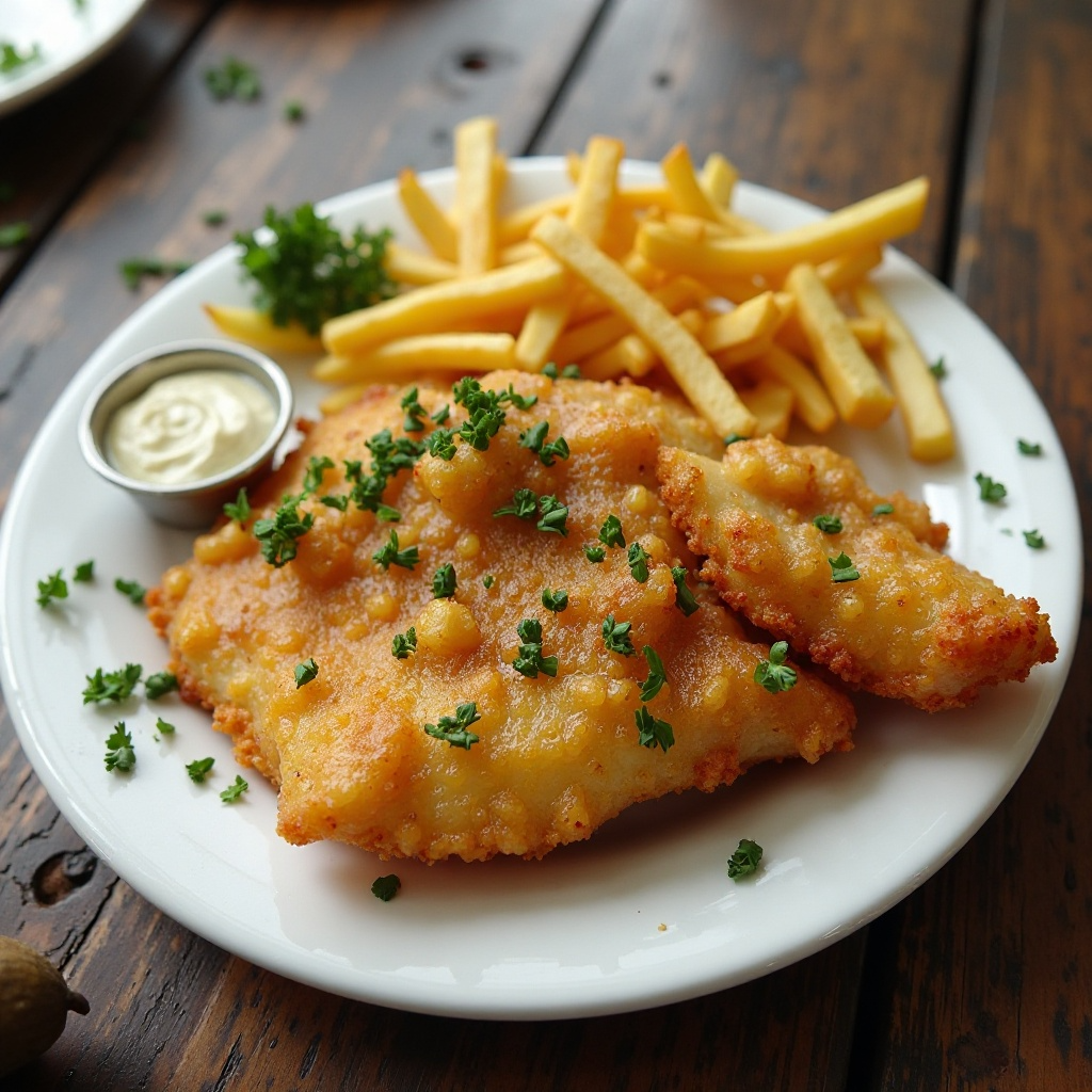 Esta versión de Fish and Chips es naturalmente baja en grasa gracias a la selección de ingredientes locales y la técnica de fritura que no requiere aceite muy caliente. La inclusión de hierbas frescas y el pescado blanco proporciona una fuente rica de proteínas y grasas saludables, mientras que las patatas ofrecen carbohidratos esenciales. Para una opción aún más saludable, puedes usar una mezcla de harina integral para una versión más integrales.