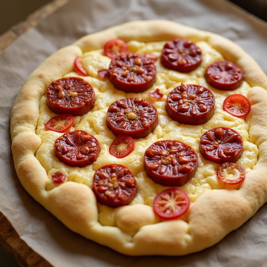 Esta receta equilibra ingredientes ricos en sabor con opciones más ligeras. El Genzano Bread aporta un toque único a la focaccia, mientras que las salchichas son una fuente de proteínas. Las verduras frescas como la cebolla y los tomates contribuyen con fibra y vitaminas esenciales. Asegúrate de ajustar la cantidad de sal según tus preferencias y necesidades dietéticas.