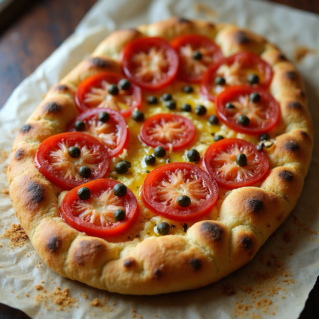 La focaccia, un tipo de pan plano originario de Liguria, especialmente conocido en la región del Sestri Levante, es una delicia para el paladar italiano. Esta receta combina ingredientes frescos típicos del Mediterráneo, como tomates y alcaparras, creando un bocadillo sabroso perfecto para disfrutar con amigos o en una comida familiar.