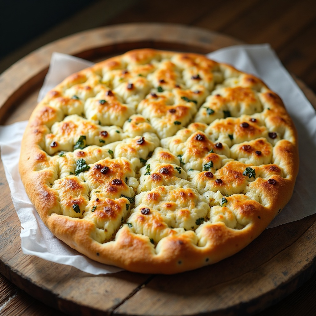 La focaccia ligure es un tipo de pan plano típico de la región italiana de Liguria, especialmente conocido en el pequeño pueblo pesquero de Bergeggi. Este pan se caracteriza por su textura aireada y crujiente en la corteza, con una masa suave que se puede untar fácilmente. Es tradicionalmente servido en aceite de oliva extra virgen y a menudo utilizado para mojar o como acompañamiento a platos principales.